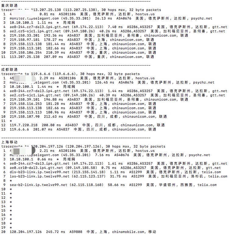 电信联通基本直连,电信163线路,移动绕香港日本。